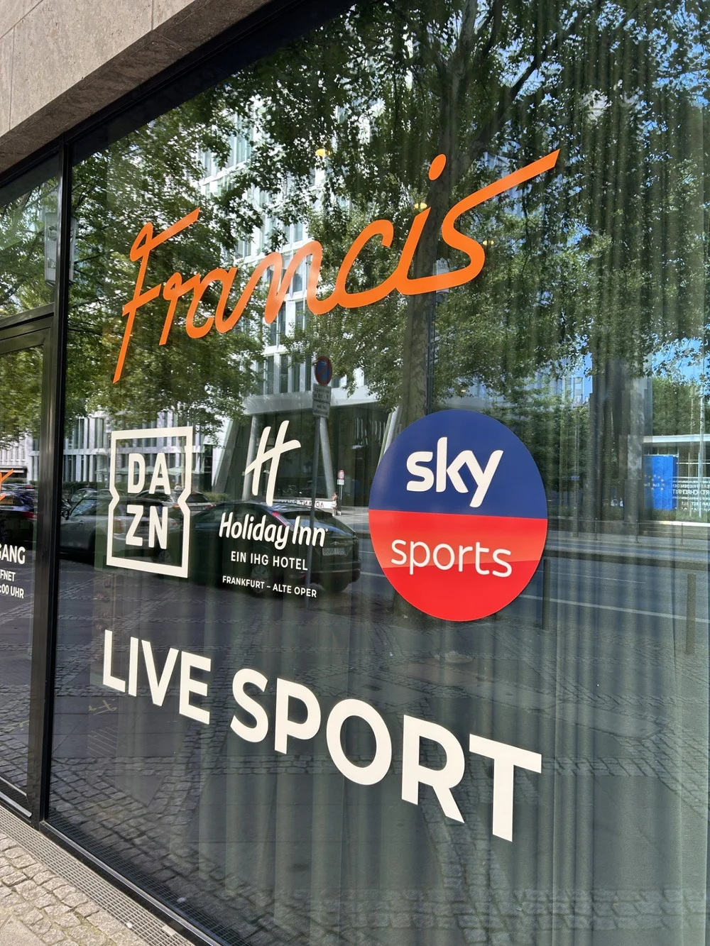 Restaurant Francis Frankfurt´s favourite Sports Bar. Mainzer Landstraße 2760329 Frankfurt am Main Facebook Instagram Link